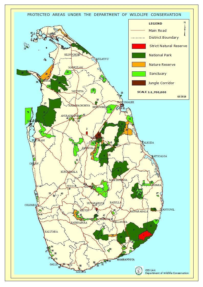 Sri Lankan kansallispuistot kartta